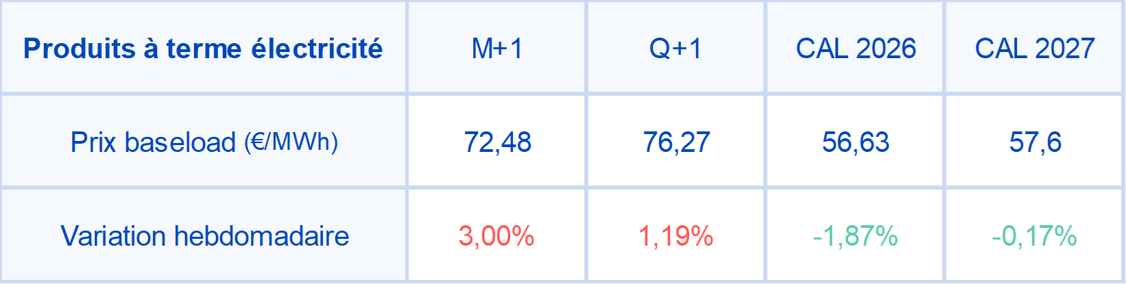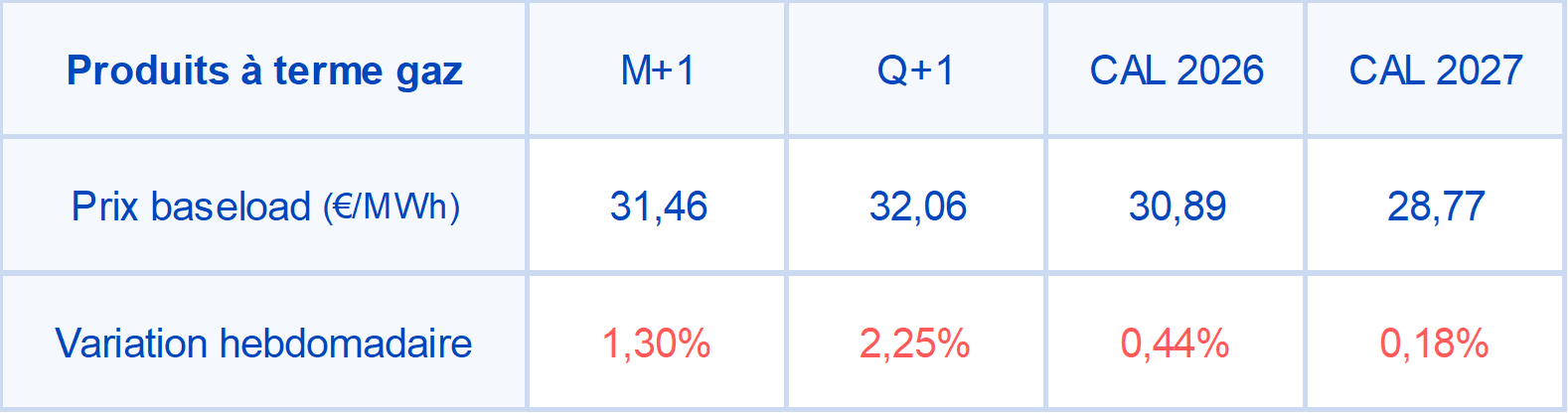 - Les prix se stabilisent pour le premier trimestre 2026, les tendances de l’hiver prochain n’étant plus soutenues par une prime de risque ;