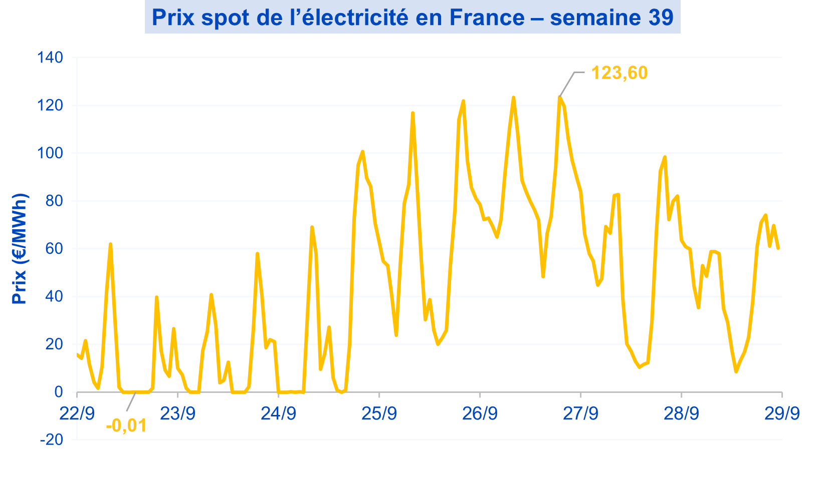 La moyenne du marché spot en France était en légère hausse, de 3 €/MWh. Cette pression sur les prix pourrait perdurer cette semaine en raison d’un vent plus faible et de températures qui se rafraîchissent.